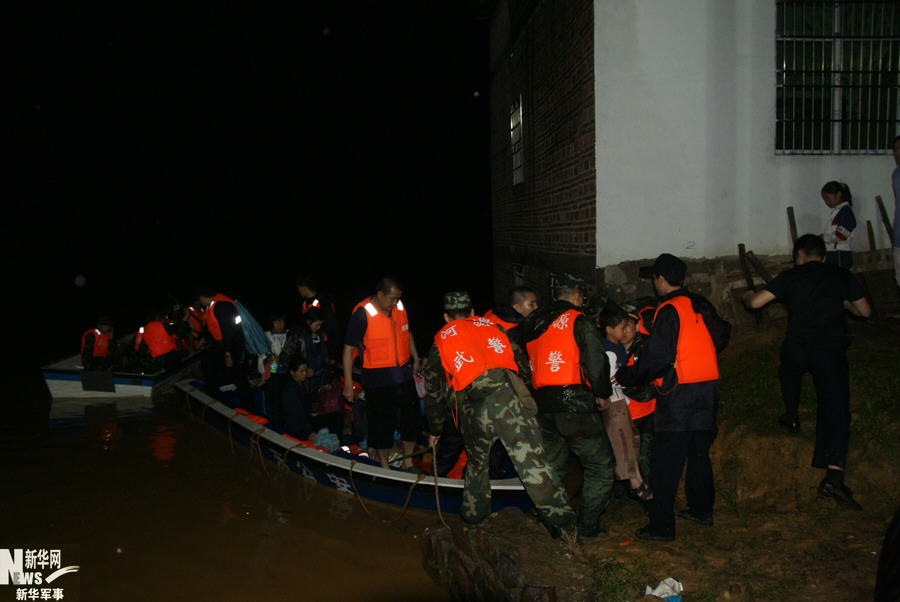 武警河源支队接到该市三防指挥部电话后,支队长黄福民率葛晓威等27名官兵组成的救援分队,火速赶赴受灾地域,与当地民兵和公安干警迅速将蓝口镇政府周边1800余名被困群众转移至安全地域。