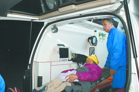 老人获救后被送上救护车 通讯员 周密 记者 龙在全 摄