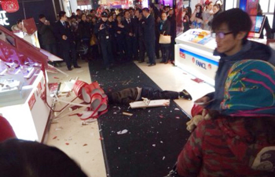 12月8日下午,一名男子从徐州金鹰彭城广场店七楼坠下身亡。现场一片狼藉,柜台被砸烂。根据周围民众的描述,该男子系自己跳楼自杀。该男子与女友购物时男子嫌贵,发生争执后,男子一气之下跳楼。12月8日下午,一名男子从徐州金鹰彭城广场店七楼坠下身亡。现场一片狼藉,柜台被砸烂。根据周围民众的描述,该男子系自己跳楼自杀。该男子与女友购物时男子嫌贵,发生争执后,男子一气之下跳楼。