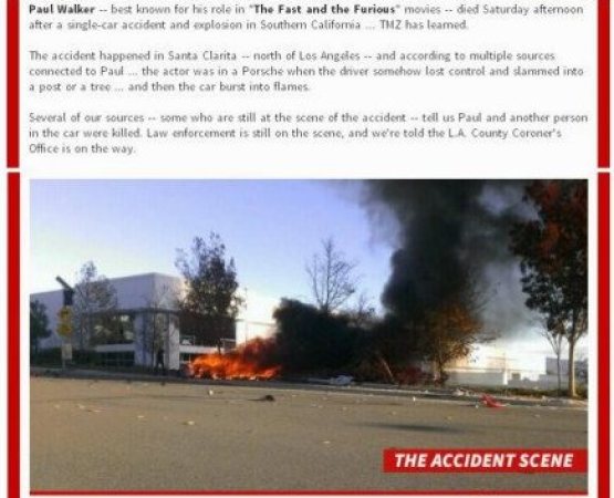 中新网12月18日电 据台湾“今日新闻网”消息,《TMZ》网站曝光保罗·沃克的死亡证明,证实他是死于“外伤和烧伤”,也就是说他是活活被烧死。