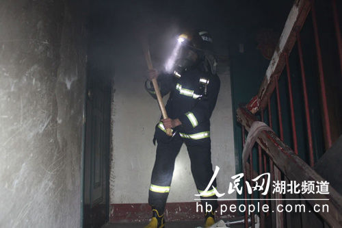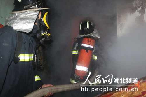图为消防官兵内攻灭火