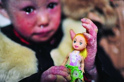 据了解,患上鱼鳞病,伊伊没有办法合上眼睛,只能睁着眼睛睡觉。因皮肤脆弱,伊伊的肢体关节活动较多的地方还会开裂出血。记者在宾馆见到伊伊时,看见她小手指关节上裹着创可贴,如果没有这些保护,裂开的皮肤往外渗出血,实在让人揪心。可伊伊很坚强,一直没有听见她喊过疼,也许是害羞,低着头手里一直摆弄着一个芭比娃娃,或许这是她最好的伙伴了。伊伊奶奶告诉记者,但因为伊伊的样子不好看,班上的孩子还是会因害怕而拒绝和伊伊一起玩耍。上学期间,因其他孩子家长反对,伊伊还曾多次辍学回家。她内心很羡慕在外边嬉闹着的孩子们,也希望自己和他们一样,有着美好的童年。伊伊奶奶说,她现在所有的希望都在孙女身上了,能给她看好病是新年最大的愿望!