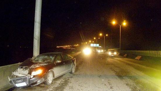上月28日凌晨2时,洪山交警在三环线青菱立交桥附近巡逻时,发现一辆无牌三轮摩托车翻在路上,不远处有一辆车牌为浙JXW657的黑色奥迪轿车(如图),右侧车头撞在水泥护栏上,保险杠撞落毁损严重。交警连忙下车查看,奥迪车内没人,而三轮车司机罗某倒在路上奄奄一息。交警呼叫救护车,将罗某送往医院,但罗某抢救无效身亡。