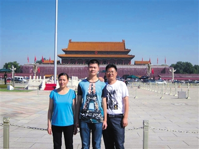 9月4日,父母送梁云鹤到华北电力大学报到,一家人在天安门合影留念。家属供图