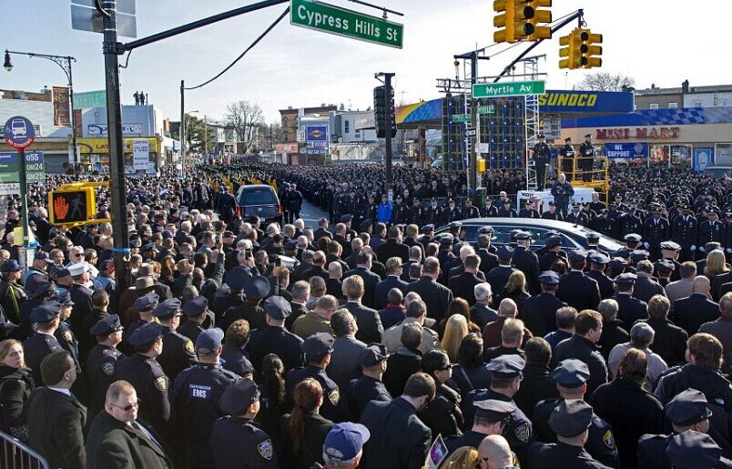 当地时间2014年12月27日,美国纽约,遭黑人枪杀的两名纽约警察其中一名Rafael Ramos的葬礼举行。据法新社报道,包括同事、家人、政客及朋友在内的数千人参加了葬礼。