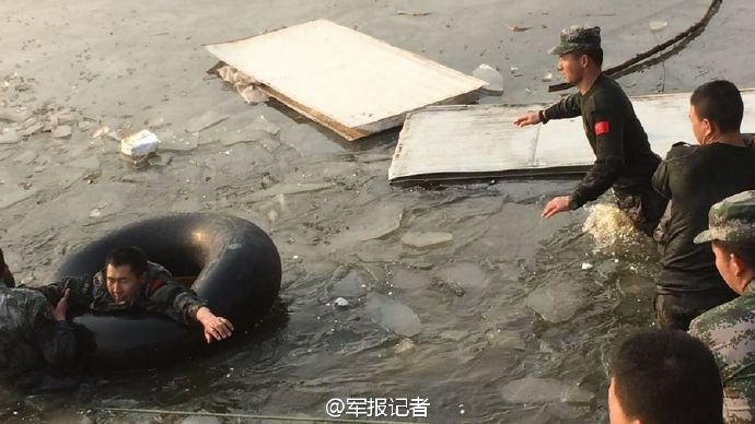据@军报记者 12月27日报道,山东莱阳两名群众在打鱼时不慎落入冰窟窿。附近的步兵营战士张玉磊和刘海利用电线等简易器材爬冰救人,后与赶来的战友一起将群众救起。其中老人抢救无效不幸去世,其儿子无大碍。“爬冰救人哥”张玉磊被冻伤,目前在医院观察治疗。