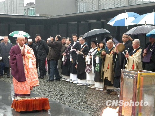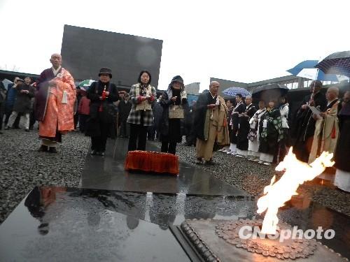 12 月 13 日 是南京大屠杀30 万遇难同胞 72 周年祭日,上午 8 点 30 分到 9 点 30 分,中日两国僧人在纪念馆祭场举行世界和平法会,悼念 30 万遇难亡灵。来自日本东本愿寺、灵云寺、圆光寺、圆照寺、东净法寺等寺院的近 30 位日本僧人,和来自南京毗卢寺的 50 多位僧人和信众,以及 30 位南京大屠杀幸存者参加了法会。