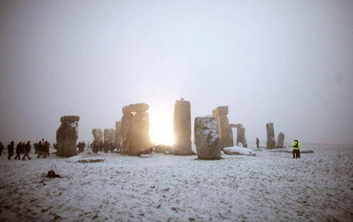 12月22日是冬至日,在英国,数百人来到古老的巨石阵进行一年一度狂欢,迎接冬至。根据考证,神秘的巨石阵大约修建于公元前2500至2000年之间,他的建造选址很可能经过精确的计算——在距离巨石阵入口处不愿地方,有一块被称为「席尔」的石头单独立在地上,如果从环状沟向这块石头望去,刚好是夏至当天太阳升起的位置。反之,则是冬至日太阳落下的地方。这或许人们选择这个特定位置迎接冬至的原因。