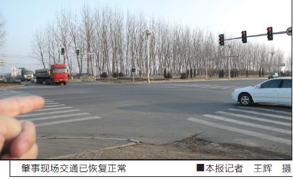 “当时轿车的车头向东,车尾朝西,前脸都被撞凹了进去,整个车横了过来。”李淑敏回忆说,大货车的车头向西,车尾朝东。“看样子,货车是从东向西行驶,而轿车是从南向北行驶。”
