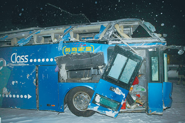 黑龙江新闻网讯 22日15时21分,哈同高速公路54公里处宾县境内,一辆七台河开往拜泉县、牌照为黑K05056的大型客车因冰雪路面发生侧滑翻入沟中。事故造成5人死亡,33人受伤。