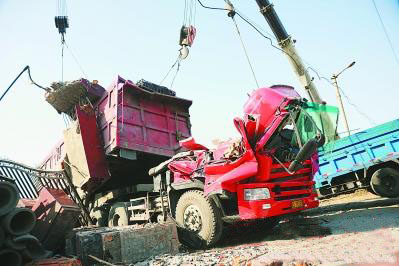 据围观群众王师傅介绍,肇事的重卡自卸王在厂里卸完货后,由于司机大意没有将车斗放下,在出厂门的时候,只听见“咣当”一声巨响,水泥拱门就被高高翘起的车斗挂倒,向前倾倒的砖石立刻压塌了自卸车的轿箱和另一辆停在门口旁边的农用车,万幸的是农用车车主当时不在车内。