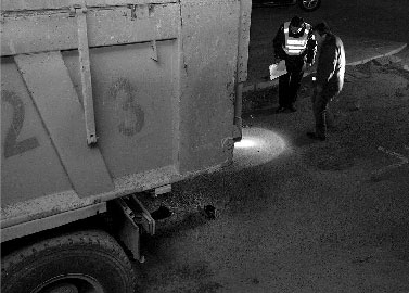 据靳师傅说,他每晚从胡家庙一工地开往战备桥一坑场倾倒渣土。当日凌晨1时许,在堡子村环岛东北方向被十余名城管拦住,要求检查。“他们说我的车轮上沾了渣土,污染了路面……”随后几名城管上了他的车,其中一名穿城管制服的男子将车开进不足10米远的停车场内,把车钥匙交给了停车场的看门人。