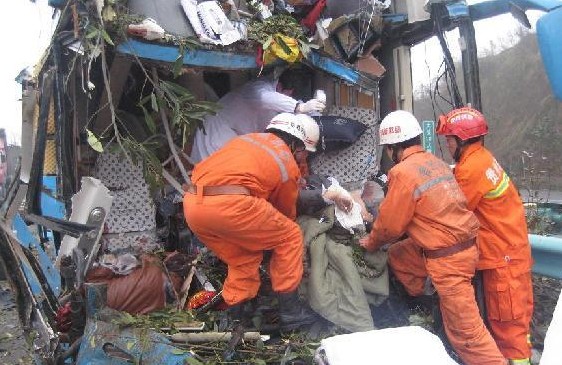 1月8日,贵阳环城高速腰子坡隧道往昆明方向发生一起重大交通事故,一大客车与一辆拉树苗的货车发生追尾,造成客车驾驶员和一名乘客死亡,客车上5人被困、受伤。消防官兵迅速赶赴现场,利用多种工具历时2个多小时将所有被困人员成功救出。