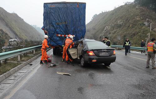 当日8时左右,在贵遵高速三合路段1254公里处,由于路面结冰,一辆小轿车撞上一辆大货车车尾底部,驾驶员在事故中死亡。遵义消防官兵迅速赶到现场,经过30分钟的努力,将小轿车中其余两名被困伤者救出,目前两名伤者无生命危险。高速公路交通状况已逐步恢复正常。