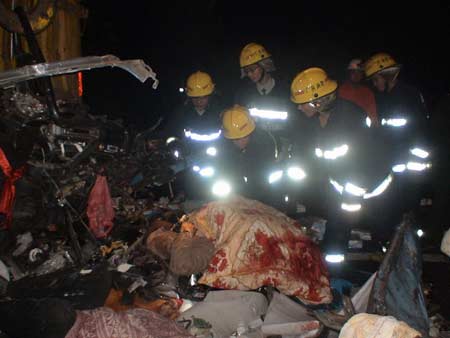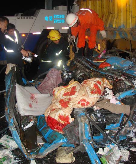消防官兵与交警部门经数小时的努力后,最终将事故车拖离现场。记者昨日发稿时,事故原因和相关善后工作仍在抓紧进行中。