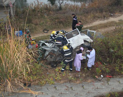 经交警初步调查,轿车当时正往泉州市区方向开,与之迎面撞击的面包车,突然越过了双实线,撞上轿车以后,在路上撒下多个零件,继而又撞向路边一根水泥防撞柱子,随后冲下4米长的护坡。交警称,因为雨水现场难以看清车痕,具体情况还得向当事司机双方进一步确认。