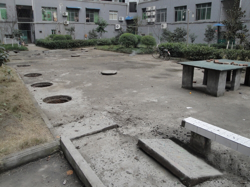 下水道井盖被炸得满地都是。