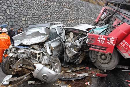 拖车出事故后,现场很快堵车。正当人们在等待时,一辆大“车从坡上冲了下来,可能是车太重路又太滑,车刹不住。就见到大车的车身一直往护栏‘蹭’,想减速,可那么长的坡,车还是一直往下冲。”这名目击者说,路上的人们见状拼命地往护坡上跑,随后大车一下“扎”进被堵的车龙中,“十几部车撞成一团,就好像揉面一样,好几部小车被压扁了,太惨了。”
