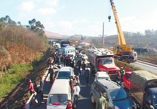 记者从交警部门获悉,此次事故是由于一大货车单方肇事,停在路中间。因为雾大影响视线,随后跟来的车辆未能及时发现前方有出事车辆,导致事故再次发生。在不同的时间内,发生了7起汽车相撞事故,相撞现场长达两公里。现场一辆别克车受到其后方油罐车的冲撞,别克车内两名香港乘客一人当场死亡,一人重伤。