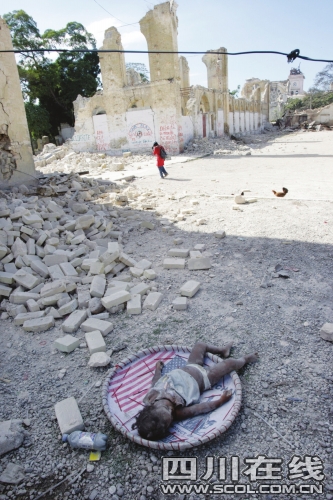 “没有人,没有药,没有解释,什么也没有……谁能告诉我为什么我的女儿就该这样死去?”海地妇女热迪·弗朗西亚13日在首都太子港圣埃斯普里医院外,怀抱女儿,悲伤满面。80岁的老妇人罗迪·巴蒂萨13日坐在“家”边哭泣,“家”已成废墟。“为什么我们的国家要遭受这样的磨难!”她哭喊道。她说,除非亲眼见到废墟下的两个孩子,否则她不会离开,只会一直坐在这里。