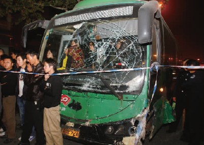 和出租车相撞的是K18路公交车,幸好当时车上只有司机一人。他有点皮外伤,情况还好。