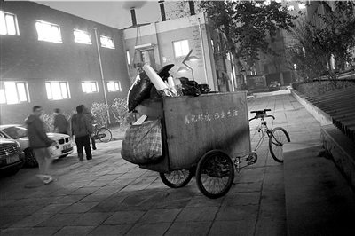 昨晚7点多,事发现场已恢复平静。一辆三轮车停在浴池西侧的空地上,三轮车上装满垃圾袋。附近一些学生说,该车就是在冲突中身亡的那名清洁工生前所骑。