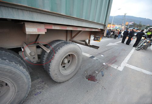 “不好!”余先生心里闪过不祥的预感,只见疾驰的集装箱车的挡泥板横杆勾住了女孩的裙子,一下子就将女孩扯下了摩托车,随即女孩就被卷入了车底……货车虽然拖行了数米之后就刹车了,可车轮下的女孩已是当场死亡。