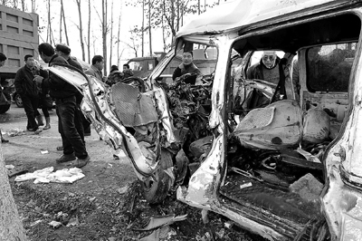 面包车被撞得面目全非,司机当场死亡