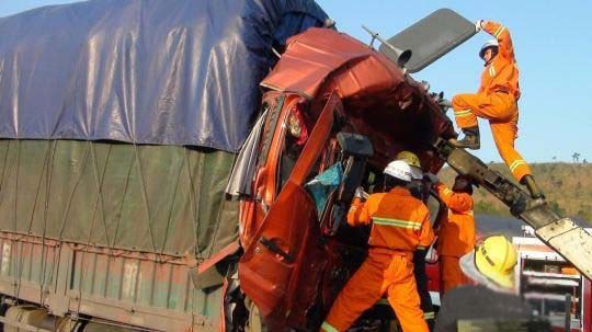 消防人员透过已经破碎的车头玻璃窗呼喊时,看到里面有一人挥手示意。现场指挥员马上命令官兵使用破拆工具,对变形的车门进行破拆,车头已被压扁,几十厘米宽度空间里面,有三名被困人员和驾驶室内的物品压在一起,状况十分惨烈。