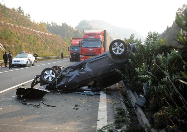 12月18日,事故现场闽牌小轿车冲到反方向侧道。