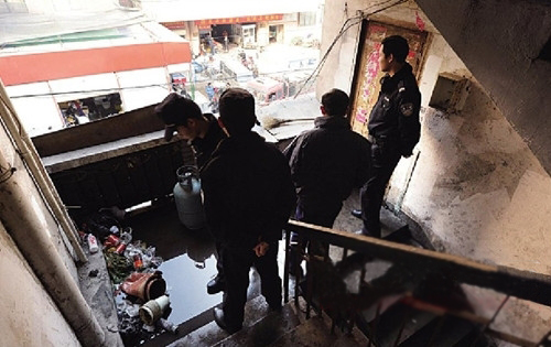 警方对案发现场进行了封锁,邻居称那只液化气罐就是童某家的。
