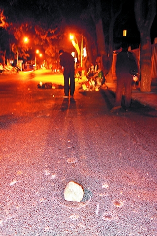 昨晚9时许,市区新华北路开元寺后门路段,一名中年男子骑摩托车摔倒路面,男子头部着地,不幸当场身亡。鲤城交警勘查现场,怀疑摩托车是撞到路面一块拳头大小的石头,酿成车毁人亡的惨剧。