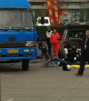 今天上午9点多,一厢式货车与一助动车在宝杨路2000号门口相撞,骑助动车的男子头部遭碾压,不幸身亡,目前事故具体原因仍在调查。