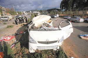 “声音很大,当时两辆车的车速应该都不算太慢。”在附近上班的保安耿师傅说,面包车是从虹桥立交桥开往世博园方向,不知道是什么原因突然撞上了绿化带,翻到了对面的公路时又与下坡的越野车发生碰撞。