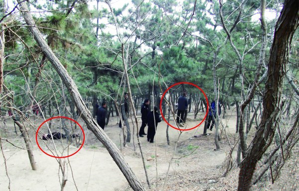 “今天早上快到7点的时候我牵着小狗来山上晨练,看见那个老哥挂在树枝上,往前走了走又看见旁边还躺着个女的。当时我就吓坏了,赶紧招呼来几个人,然后报了警。”家住寿光路的张女士最先拨打了110和120,随后赶到的120医生发现两人早已死亡,身体也已被冻僵了。