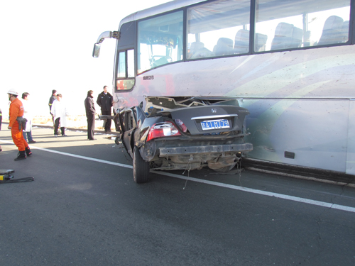 内蒙古省际大通道赤峰市巴林右旗大板镇至阿鲁科尔沁旗天山镇段、召胡图格大桥附近,9号上午11点30分左右,一辆从大板镇发往天山镇的乘载40多名乘客的大客车和一辆广州本田小轿车相撞,造成三死四伤。