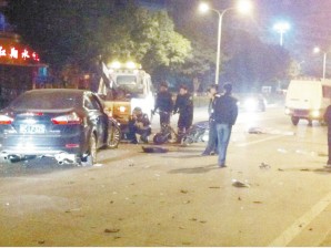 “我还以为他(轿车司机)要查看对方的情况,没想到他下车就跑了。”事故目击者刘先生说,前晚11点半左右,他突然听见“呯”的一声,回头看见一辆黑色轿车翻了个底朝天在路面上滑行,摩擦出不少火花。一辆摩托车被撞飞,碎片四散。轿车在路面上滑行几十米后停下来,车上的人打开车门爬出来,并没有去抢救对方,而是弃车跑了。