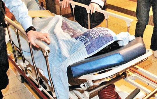 图为疑凶以毛毡盖脸被送往羁留病房。
