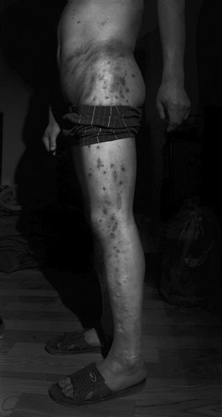 从胸部以下到腿部,烟头大小的伤痕布满了吴发兵周身,足有上百处,伤口呈黑紫色,多处已经结痂。