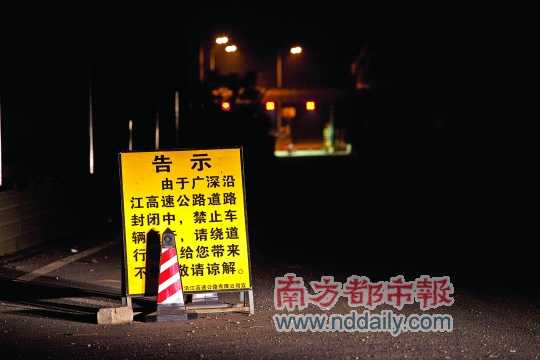 昨日18时许,记者在事发点附近的高速入口位置看到,广深沿江高速广州往虎门方向从东二环至南岗入口、虎门往广州方向从麻涌至东二环路段仍处于双向封闭之中。
