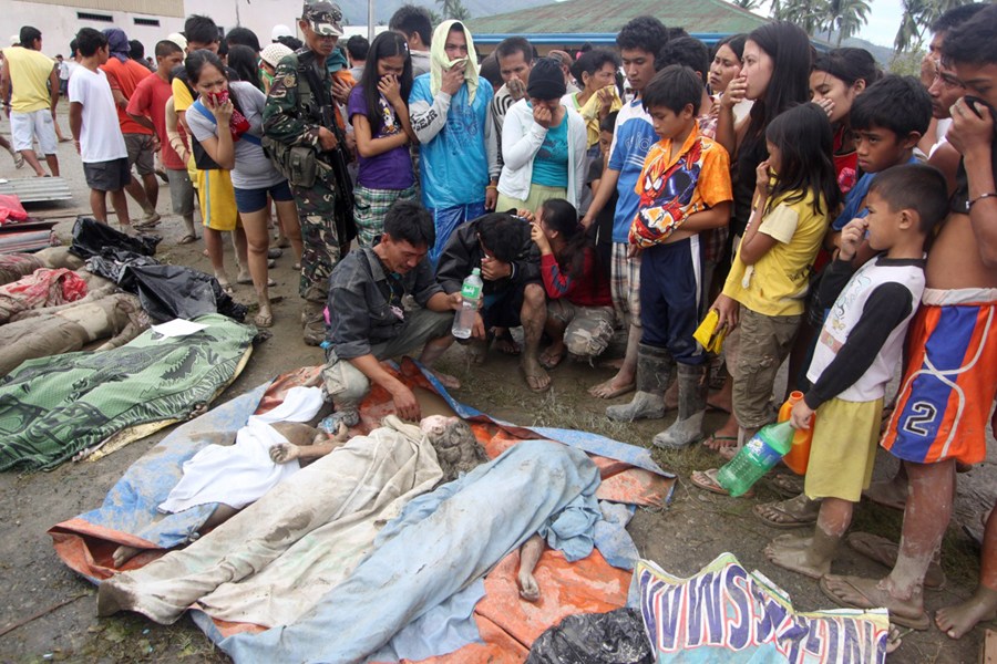 当地时间12月5日晚,菲律宾国家减灾管理委员会发布通报称,4日凌晨开始袭击菲南部地区的台风“宝霞”已造成274人死亡和339人受伤,超过20万人受灾。“宝霞”给菲律宾带来强降雨和大风,已引发多起洪水、泥石流等灾害。图为当地时间12月5日,菲律宾南部的新巴丹半岛,台风"宝霞"引起的灾害中的遇难者。