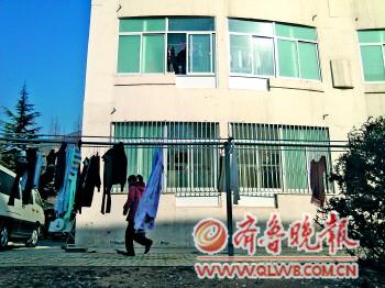 跳楼女生就是从这座宿舍楼二楼开着窗子的阳台跳下。本报记者赵兴超摄