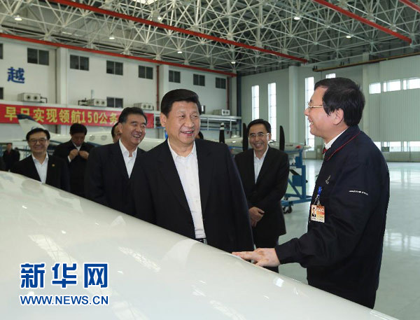 12月7日至11日,中共中央总书记、中央军委主席习近平在广东省考察工作。这是习近平在中航通用飞机有限责任公司珠海基地总装车间听取公司新型飞机研制情况介绍。 新华社记者 兰红光 摄