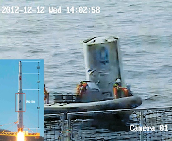 据介绍,打捞工作从当地时间13日下午4时开始,深海潜水员在海底80米处花费了8个半小时,终于成功打捞火箭残骸。火箭残骸长10米,直径1.5米左右,残骸上印有韩文“河”字,可以确定是“银河3号”火箭的残骸。韩国军方决定将残骸移至平泽海军第二舰队,由韩国国防科学研究所等专家进行精密分析工作,以期能获取朝鲜火箭技术的有用资料。