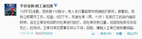 中新网12月17日电 据洛阳市公安局西工派出所消息,12月7日凌晨,该所接110指令,称有人在行署路菜市场被殴打致死。