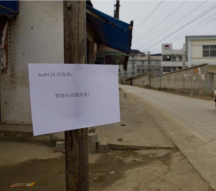 12月13日13时许,广西柳州市广场路2号2栋301单元,导致1人死亡1人受伤。死者系柳州市规划局长何彬,伤者系其妻陈某,50岁已退休,犯罪嫌疑人罗浩敏当场被抓。据警方透露,嫌犯因欠下巨额赌债而入室抢劫,遇到抵抗后行凶杀人。随后警方将此事定性为入室抢劫,在网上引起轩然大波。多数网友将此事件的发生归结为拆迁等问题,不乏甚者恶言相向于逝者。图为2012年12月16日,广西省柳州市香兰村,一名网友对于柳州市规划局长被杀案的评论:“默默向英雄致敬!”孙湛 摄