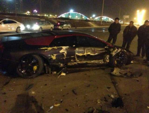 深夜,一辆崭新的兰博基尼跑车行驶到南滨河路与团结路丁字路口时,被一辆转弯的黑色轿车撞击并推离数米远。事故发生后肇事司机下车欲逃逸,被对方及时控制。经过交警部门检测,肇事司机酒精含量为232.11mg/100ml,属于醉酒驾驶。而兰博基尼的维修费则高达百万元。记者从警方获悉,在此次事故中,肇事司机或将负主要责任。据悉,这也是兰州市首起由豪车事故引发的天价索赔案。