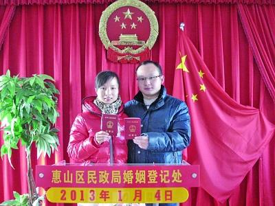 无锡市惠山区一对新人昨天领证。