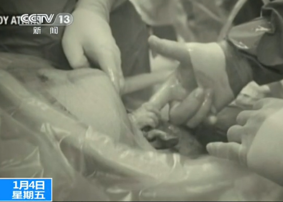 美国婴儿在母亲子宫中紧握医生手指。(视频截图)