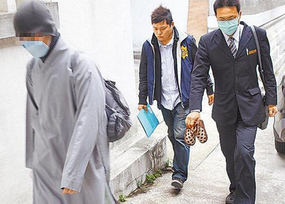 检警昨(4日)解剖遭虐死的女童遗体,其生母(左)穿袈裟到场,不发一语。